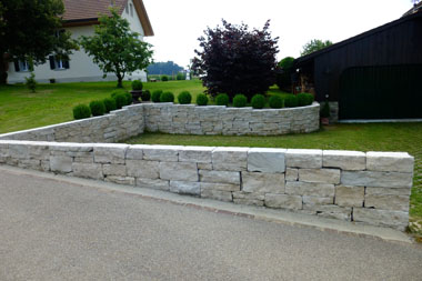 Mit Natursteinmauern vergrössern Sie beispielsweise Ihre nutzbare Gartenfläche. Wir erstellen Mauern aus Granit, Kalk oder Sandstein.