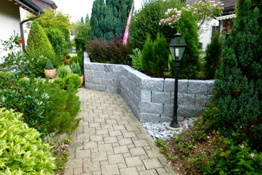 Selbstverständlich setzen wir auch andere Materialien ein, z.B. Beton, Löffelsteine oder sonstige Kunststeine. Auch Holzmauern sind möglich.