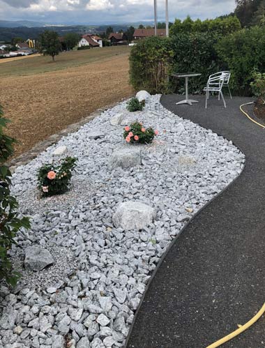 Wir erstellen Naturplätze aus Juramergel und Schotter in diversen Farben. Aber auch Verbundsteinvorplätze aus Betonsteinen in verschiedenen Formen und Farben.